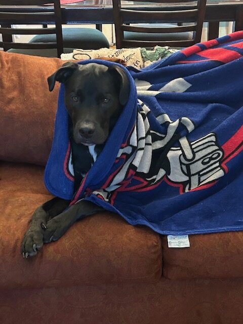“Gunner has been making great progress! I was able to keep him focused on me while the trash truck went by (from the window but still a vast improvement) and that is one of his biggest triggers. The A to B management trick has been working so well in tricky situations, yesterday he had to go to the vet and he was so good. He even is able to sit calmly on the deck and watch the deer go by as long as they are far away. I am excited to see his progress in the future as we continue to work on his reactivity!”
